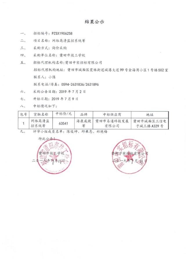 结果公示(项目编号:PZSX1906258)