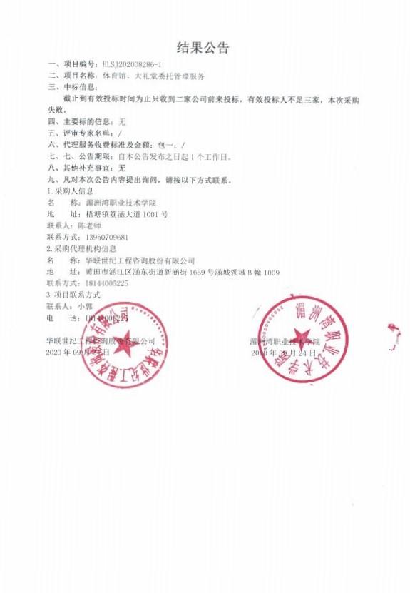 流标公告(招标编号:HLSJ202008286-1)