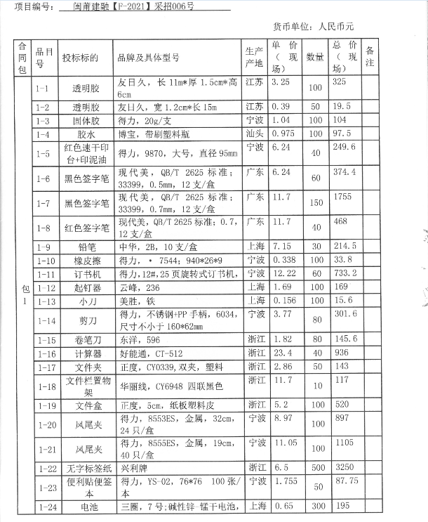 | 1 | 办公用品采购 | 1批 | 莆田市城厢区宜优办公用品店 | 福建省莆田市城厢区龙桥街道石室路1197号 | 41998.75 | 详见附件 |