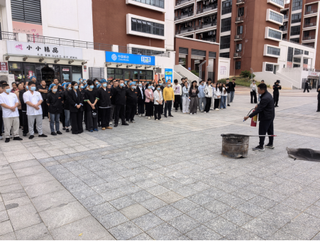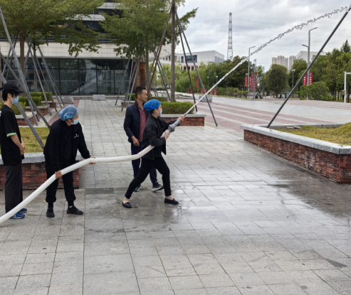 此次培训通过理论讲解与实践操作相结合的方式,由消防维保单位技术人员现场讲解演示灭火器操作及灭火毯、消防水带的使用技巧。随后参训人员分组轮流使用灭火器扑救模拟火源,用灭火毯处置小型油火,互相配合使用消防水带完成消火栓供水演练,全程由技术人员现场指导纠正,确保每个人都能熟练掌握操作技能。